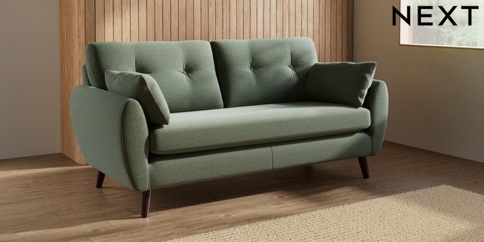 7.3.1 Buy Wilson Buttoned Back 3 Seater Small Sofa Relaxed Linen Look Dark Green Retro Tapered - Dark Brown from the Seasons online shop Click here to use our website with more accessibility support, for example screen readers
