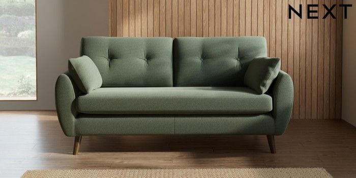 7.3.1 Buy Wilson Buttoned Back 3 Seater Small Sofa Relaxed Linen Look Dark Green Retro Tapered - Mid from the Seasons online shop Click here to use our website with more accessibility support, for example screen readers