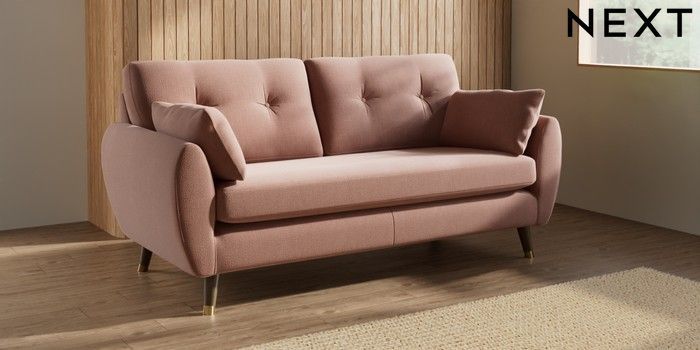 7.3.1 Buy Wilson Buttoned Back 3 Seater Small Sofa Relaxed Linen Look Light Rust Brown Low Retro Tapered Metal Cap - Mid from the Seasons online shop Click here to use our website with more accessibility support, for example screen readers