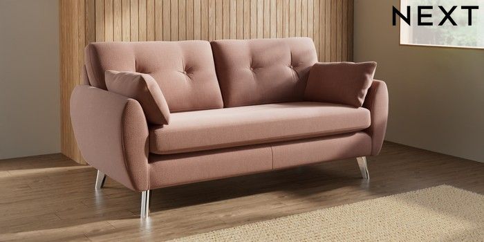 7.3.1 Buy Wilson Buttoned Back 3 Seater Small Sofa Relaxed Linen Look Light Rust Brown Metal Tapered - Chrome from the Seasons online shop Click here to use our website with more accessibility support, for example screen readers