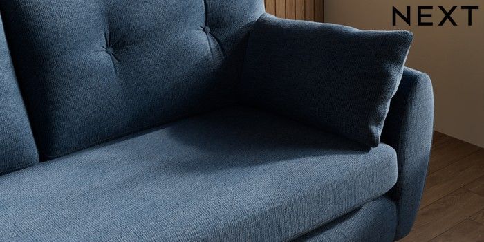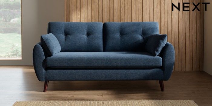 7.3.1 Buy Wilson Buttoned Back 3 Seater Small Sofa Ripple Chenille Dark Blue Retro Tapered - Dark Brown from the Seasons online shop Click here to use our website with more accessibility support, for example screen readers