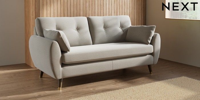 7.3.1 Buy Wilson Buttoned Back 3 Seater Small Sofa Ripple Chenille Light Natural Low Retro Tapered Metal Cap - Mid from the Seasons online shop Click here to use our website with more accessibility support, for example screen readers