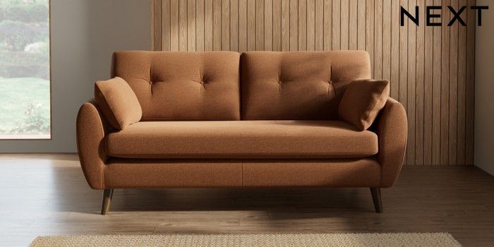 7.2.10 Buy Wilson Buttoned Back 3 Seater Small Sofa Ripple Chenille Mid Rust Brown Retro Tapered - Mid from the Seasons online shop Click here to use our website with more accessibility support, for example screen readers