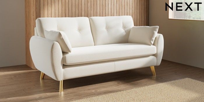 7.3.1 Buy Wilson Buttoned Back 3 Seater Small Sofa Ripple Chenille Oyster Metal Tapered - Gold from the Seasons online shop Click here to use our website with more accessibility support, for example screen readers