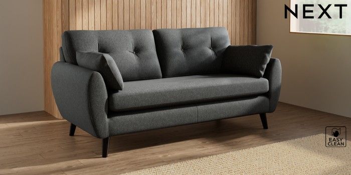 7.3.1 Buy Wilson Buttoned Back 3 Seater Small Sofa Tweedy Blend Easy Clean Charcoal Grey Retro Tapered - Dark from the Seasons online shop Click here to use our website with more accessibility support, for example screen readers