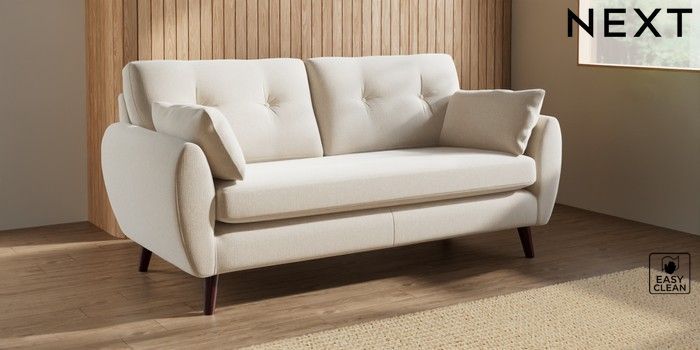 7.3.1 Buy Wilson Buttoned Back 3 Seater Small Sofa Tweedy Blend Easy Clean Oyster Retro Tapered - Dark Brown from the Seasons online shop Click here to use our website with more accessibility support, for example screen readers