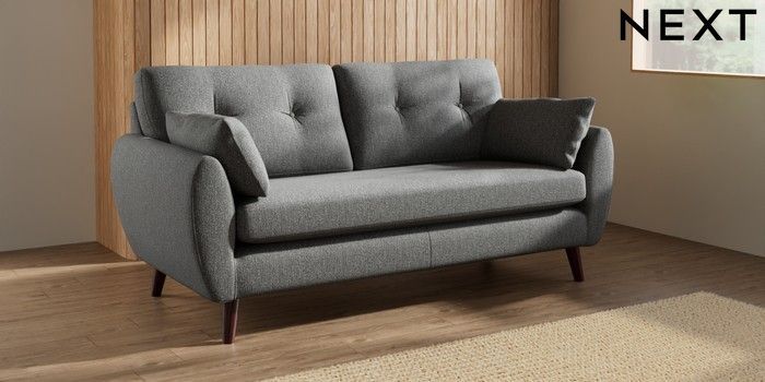7.3.1 Buy Wilson Buttoned Back 3 Seater Small Sofa Tweedy Chenille Dark Grey Retro Tapered - Dark Brown from the Seasons online shop Click here to use our website with more accessibility support, for example screen readers