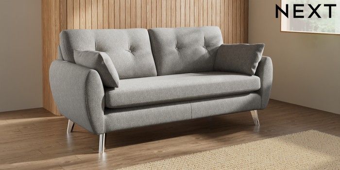 7.3.1 Buy Wilson Buttoned Back 3 Seater Small Sofa Tweedy Chenille Mid Grey Metal Tapered - Chrome from the Seasons online shop Click here to use our website with more accessibility support, for example screen readers
