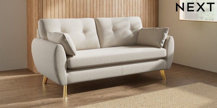 7.3.1 Buy Wilson Buttoned Back 3 Seater Small Sofa Tweedy Chenille Oyster Metal Tapered - Gold from the Seasons online shop Click here to use our website with more accessibility support, for example screen readers
