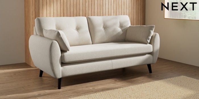 7.3.1 Buy Wilson Buttoned Back 3 Seater Small Sofa Tweedy Chenille Oyster Retro Tapered - Dark from the Seasons online shop Click here to use our website with more accessibility support, for example screen readers