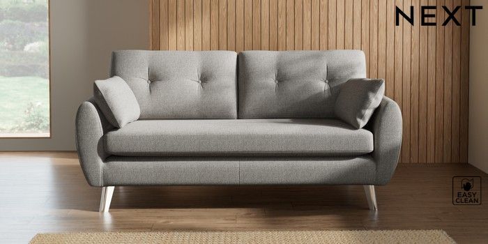 7.3.1 Buy Wilson Buttoned Back 3 Seater Small Sofa Woven Chenille Easy Clean Light Grey Metal Tapered - Chrome from the Seasons online shop Click here to use our website with more accessibility support, for example screen readers