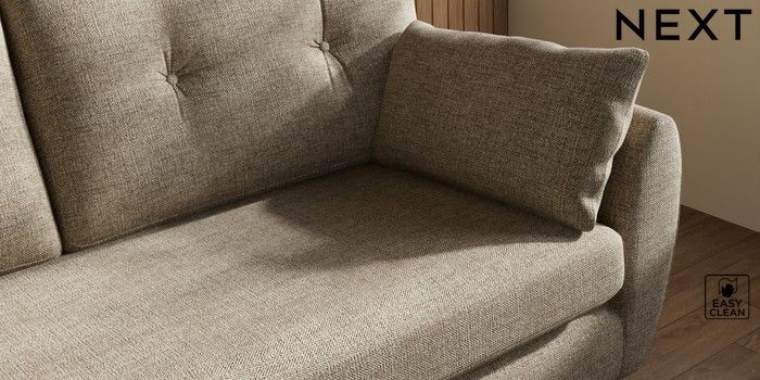 7.3.1 Buy Wilson Buttoned Back 3 Seater Small Sofa Woven Chenille Easy Clean Mid Natural Low Retro Tapered Metal Cap - Mid from the Seasons online shop Click here to use our website with more accessibility support, for example screen readers