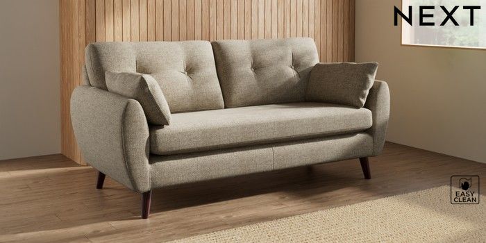 7.3.1 Buy Wilson Buttoned Back 3 Seater Small Sofa Woven Chenille Easy Clean Mid Natural Retro Tapered - Dark Brown from the Seasons online shop Click here to use our website with more accessibility support, for example screen readers