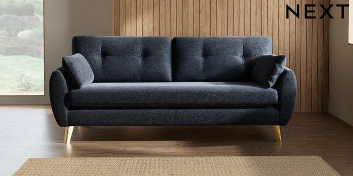 7.3.1 Buy Wilson Buttoned Back 3 Seater Sofa Boucle Chenille Dark Slate Blue Metal Tapered - Gold from the Seasons online shop Click here to use our website with more accessibility support, for example screen readers