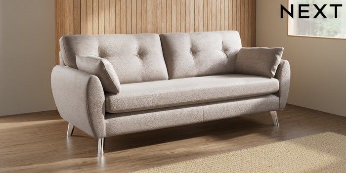 7.3.1 Buy Wilson Buttoned Back 3 Seater Sofa Boucle Chenille Light Natural Metal Tapered - Chrome from the Seasons online shop Click here to use our website with more accessibility support, for example screen readers