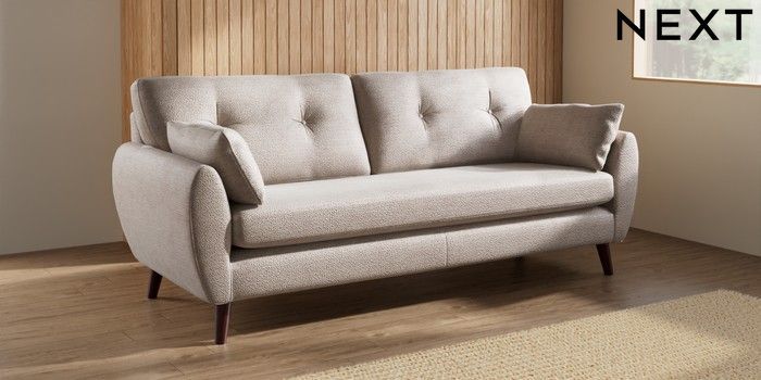 7.3.1 Buy Wilson Buttoned Back 3 Seater Sofa Boucle Chenille Light Natural Retro Tapered - Dark Brown from the Seasons online shop Click here to use our website with more accessibility support, for example screen readers