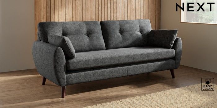 7.3.1 Buy Wilson Buttoned Back 3 Seater Sofa Boucle Weave Easy Clean Charcoal Grey Retro Tapered - Dark Brown from the Seasons online shop Click here to use our website with more accessibility support, for example screen readers