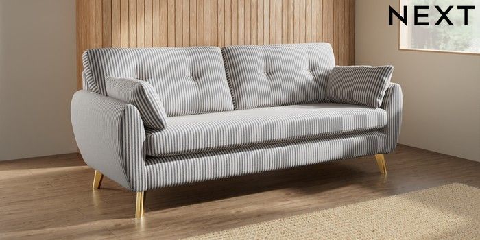 7.3.1 Buy Wilson Buttoned Back 3 Seater Sofa Chenille Stripe Slate Blue Metal Tapered - Gold from the Seasons online shop Click here to use our website with more accessibility support, for example screen readers