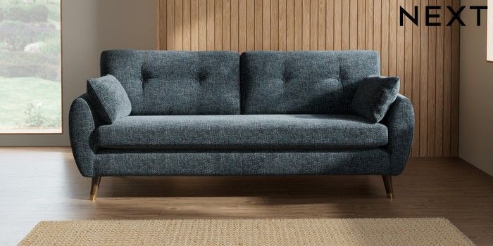 7.3.1 Buy Wilson Buttoned Back 3 Seater Sofa Chunky Chenille Dark Navy Blue Low Retro Tapered Metal Cap - Mid from the Seasons online shop Click here to use our website with more accessibility support, for example screen readers