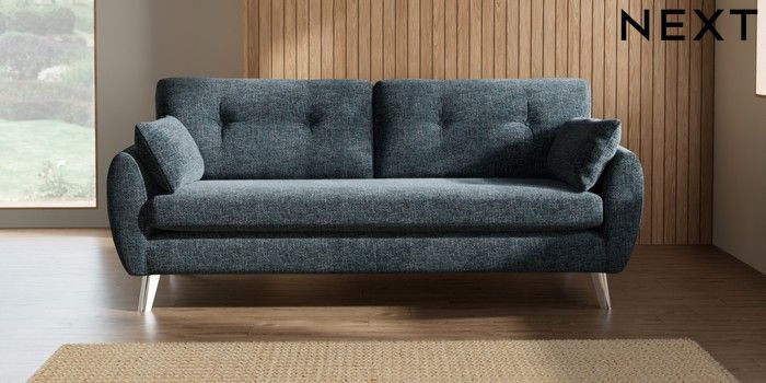 7.3.1 Buy Wilson Buttoned Back 3 Seater Sofa Chunky Chenille Dark Navy Blue Metal Tapered - Chrome from the Seasons online shop Click here to use our website with more accessibility support, for example screen readers