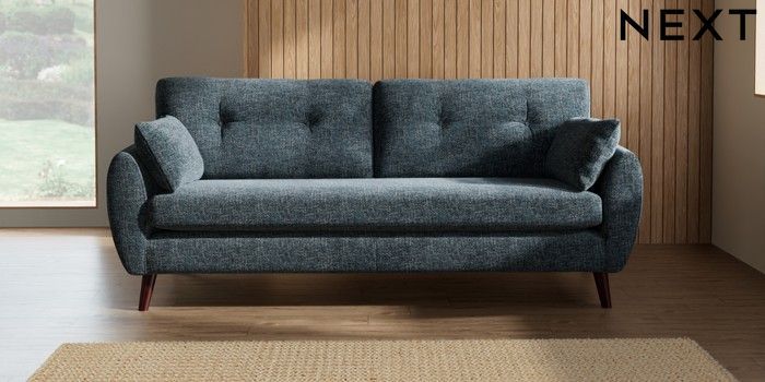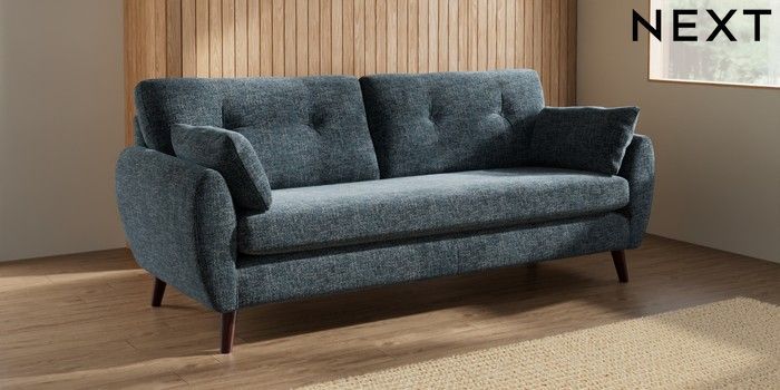 7.3.1 Buy Wilson Buttoned Back 3 Seater Sofa Chunky Chenille Dark Navy Blue Retro Tapered - Dark Brown from the Seasons online shop Click here to use our website with more accessibility support, for example screen readers