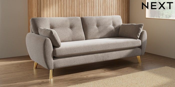 7.3.1 Buy Wilson Buttoned Back 3 Seater Sofa Chunky Chenille Light Dove Metal Tapered - Gold from the Seasons online shop Click here to use our website with more accessibility support, for example screen readers
