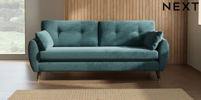 7.3.1 Buy Wilson Buttoned Back 3 Seater Sofa Chunky Chenille Mid Teal Green Low Retro Tapered Metal Cap - Mid from the Seasons online shop Click here to use our website with more accessibility support, for example screen readers