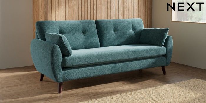 7.3.1 Buy Wilson Buttoned Back 3 Seater Sofa Chunky Chenille Mid Teal Green Retro Tapered - Dark Brown from the Seasons online shop Click here to use our website with more accessibility support, for example screen readers