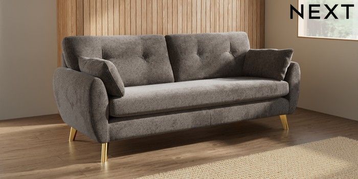 7.3.1 Buy Wilson Buttoned Back 3 Seater Sofa Chunky Chenille Mink Brown Metal Tapered - Gold from the Seasons online shop Click here to use our website with more accessibility support, for example screen readers