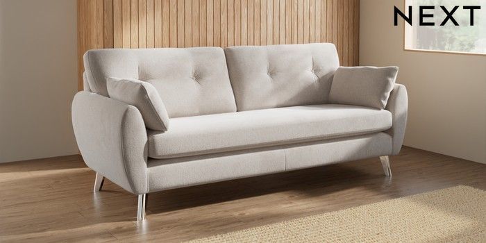 7.3.1 Buy Wilson Buttoned Back 3 Seater Sofa Chunky Chenille Oyster Metal Tapered - Chrome from the Seasons online shop Click here to use our website with more accessibility support, for example screen readers