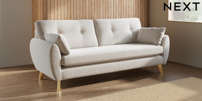 7.3.1 Buy Wilson Buttoned Back 3 Seater Sofa Chunky Marl Oyster Metal Tapered - Gold from the Seasons online shop Click here to use our website with more accessibility support, for example screen readers