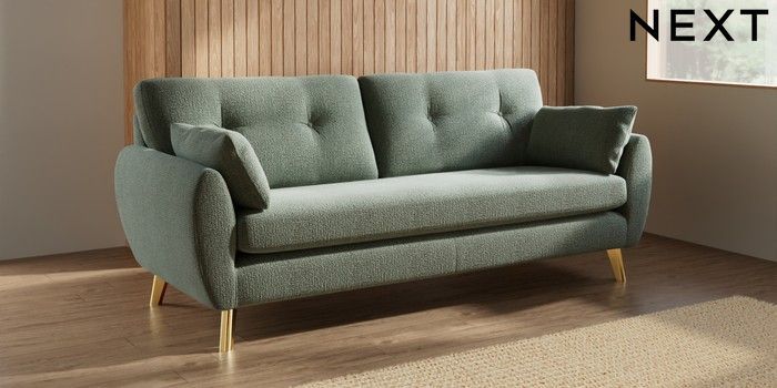 7.3.1 Buy Wilson Buttoned Back 3 Seater Sofa Chunky Texture Mid Forest Green Metal Tapered - Gold from the Seasons online shop Click here to use our website with more accessibility support, for example screen readers
