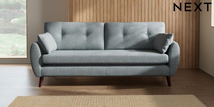 7.3.1 Buy Wilson Buttoned Back 3 Seater Sofa Chunky Weave Mid Blue Retro Tapered - Dark Brown from the Seasons online shop Click here to use our website with more accessibility support, for example screen readers
