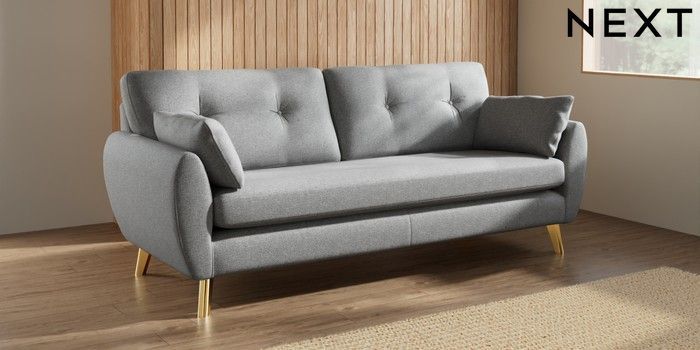 7.3.1 Buy Wilson Buttoned Back 3 Seater Sofa Chunky Weave Mid Grey Metal Tapered - Gold from the Seasons online shop Click here to use our website with more accessibility support, for example screen readers