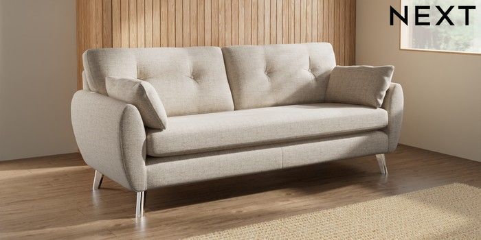 7.3.1 Buy Wilson Buttoned Back 3 Seater Sofa Chunky Weave Mid Natural Metal Tapered - Chrome from the Seasons online shop Click here to use our website with more accessibility support, for example screen readers