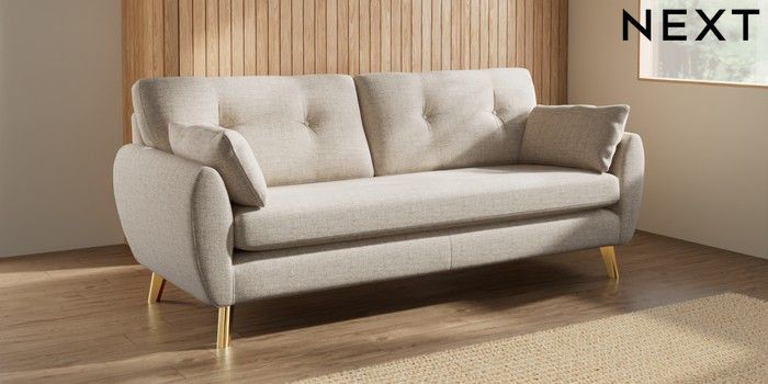 7.3.1 Buy Wilson Buttoned Back 3 Seater Sofa Chunky Weave Mid Natural Metal Tapered - Gold from the Seasons online shop Click here to use our website with more accessibility support, for example screen readers
