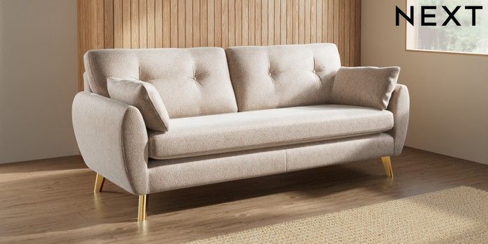 7.3.1 Buy Wilson Buttoned Back 3 Seater Sofa Cotswold Chenille Light Natural Metal Tapered - Gold from the Seasons online shop Click here to use our website with more accessibility support, for example screen readers