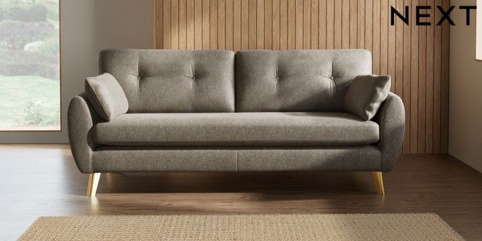 7.3.1 Buy Wilson Buttoned Back 3 Seater Sofa Cotswold Chenille Mid Mink Brown Metal Tapered - Gold from the Seasons online shop Click here to use our website with more accessibility support, for example screen readers