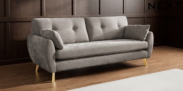 7.3.1 Buy Wilson Buttoned Back 3 Seater Sofa Distressed Velour French Grey Metal Tapered - Gold from the Seasons online shop Click here to use our website with more accessibility support, for example screen readers