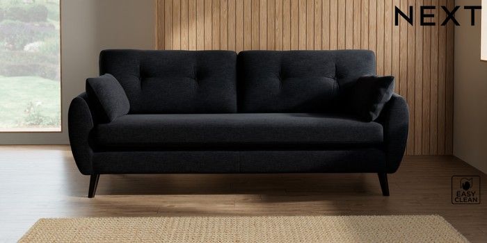 7.2.10 Buy Wilson Buttoned Back 3 Seater Sofa Fine Chenille Easy Clean Black Retro Tapered - Dark from the Seasons online shop Click here to use our website with more accessibility support, for example screen readers