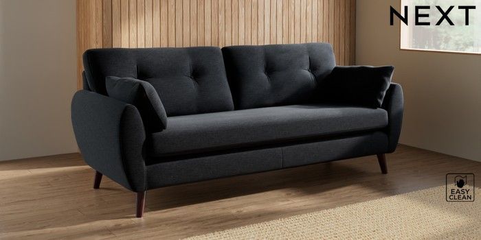7.3.1 Buy Wilson Buttoned Back 3 Seater Sofa Fine Chenille Easy Clean Black Retro Tapered - Dark Brown from the Seasons online shop Click here to use our website with more accessibility support, for example screen readers