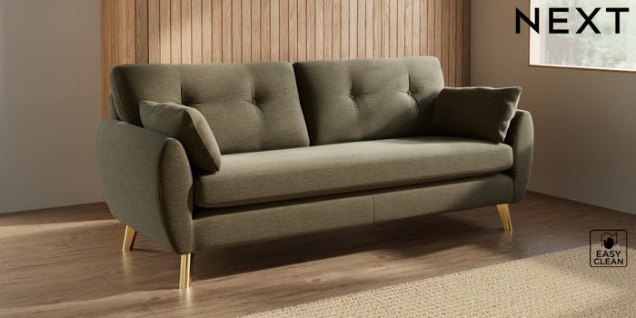 7.3.1 Buy Wilson Buttoned Back 3 Seater Sofa Fine Chenille Easy Clean Dark Moss Green Metal Tapered - Gold from the Seasons online shop Click here to use our website with more accessibility support, for example screen readers