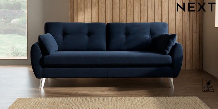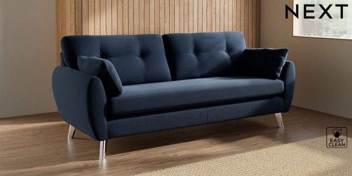 7.3.1 Buy Wilson Buttoned Back 3 Seater Sofa Fine Chenille Easy Clean Dark Navy Blue Metal Tapered - Chrome from the Seasons online shop Click here to use our website with more accessibility support, for example screen readers