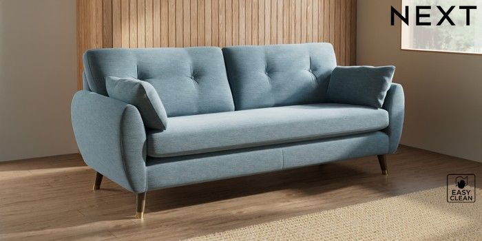 7.3.1 Buy Wilson Buttoned Back 3 Seater Sofa Fine Chenille Easy Clean Mid Blue Low Retro Tapered Metal Cap - Mid from the Seasons online shop Click here to use our website with more accessibility support, for example screen readers