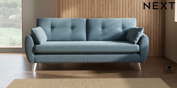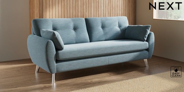 7.3.1 Buy Wilson Buttoned Back 3 Seater Sofa Fine Chenille Easy Clean Mid Blue Metal Tapered - Chrome from the Seasons online shop Click here to use our website with more accessibility support, for example screen readers