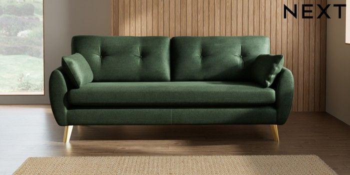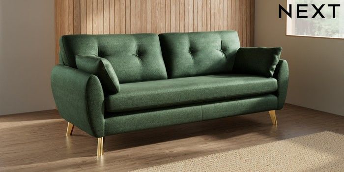 7.3.1 Buy Wilson Buttoned Back 3 Seater Sofa Luxe Chenille Dark Green Metal Tapered - Gold from the Seasons online shop Click here to use our website with more accessibility support, for example screen readers