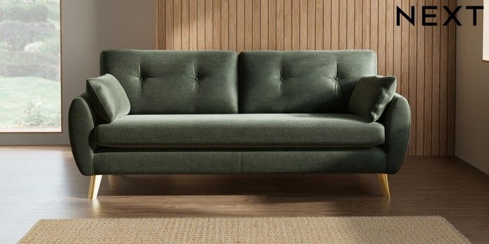 7.3.1 Buy Wilson Buttoned Back 3 Seater Sofa Luxe Chenille Mid Green Metal Tapered - Gold from the Seasons online shop Click here to use our website with more accessibility support, for example screen readers