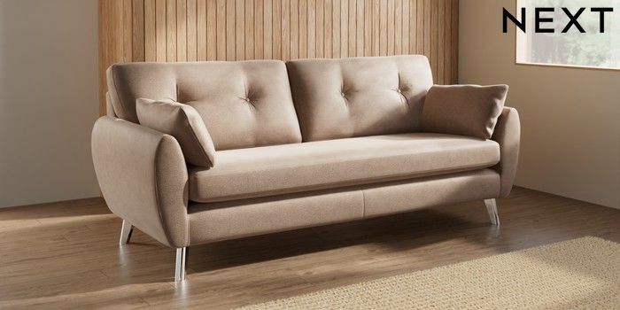 7.3.1 Buy Wilson Buttoned Back 3 Seater Sofa Luxe Chenille Mid Natural Metal Tapered - Chrome from the Seasons online shop Click here to use our website with more accessibility support, for example screen readers