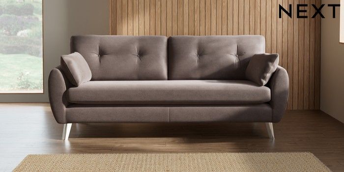 7.3.1 Buy Wilson Buttoned Back 3 Seater Sofa Luxe Chenille Mink Brown Metal Tapered - Chrome from the Seasons online shop Click here to use our website with more accessibility support, for example screen readers