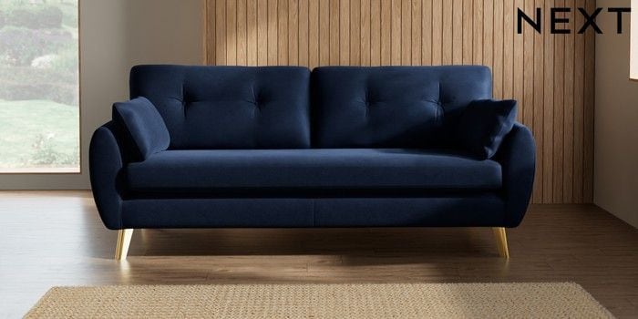 7.3.1 Buy Wilson Buttoned Back 3 Seater Sofa Luxe Chenille Navy Blue Metal Tapered - Gold from the Seasons online shop Click here to use our website with more accessibility support, for example screen readers